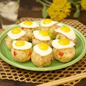 ボウルにごはん、<5>を加えて混ぜ合わせ、6等分にしてラップに包んで丸める。