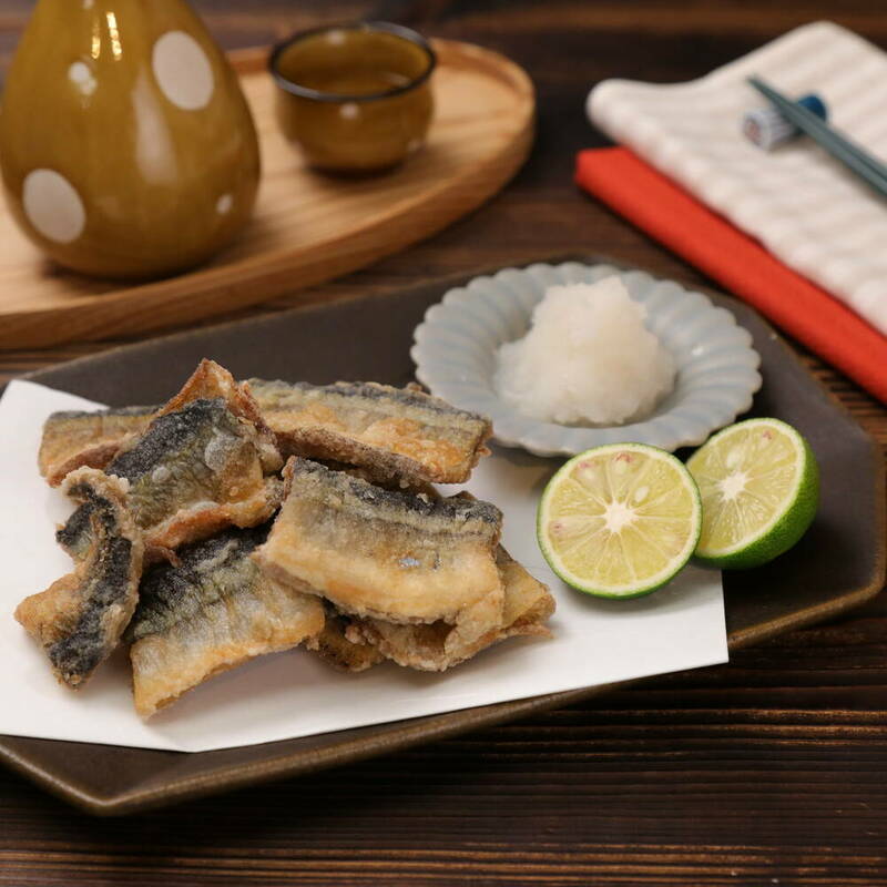油を切って、器にのせる。大根おろしとすだちを添える。