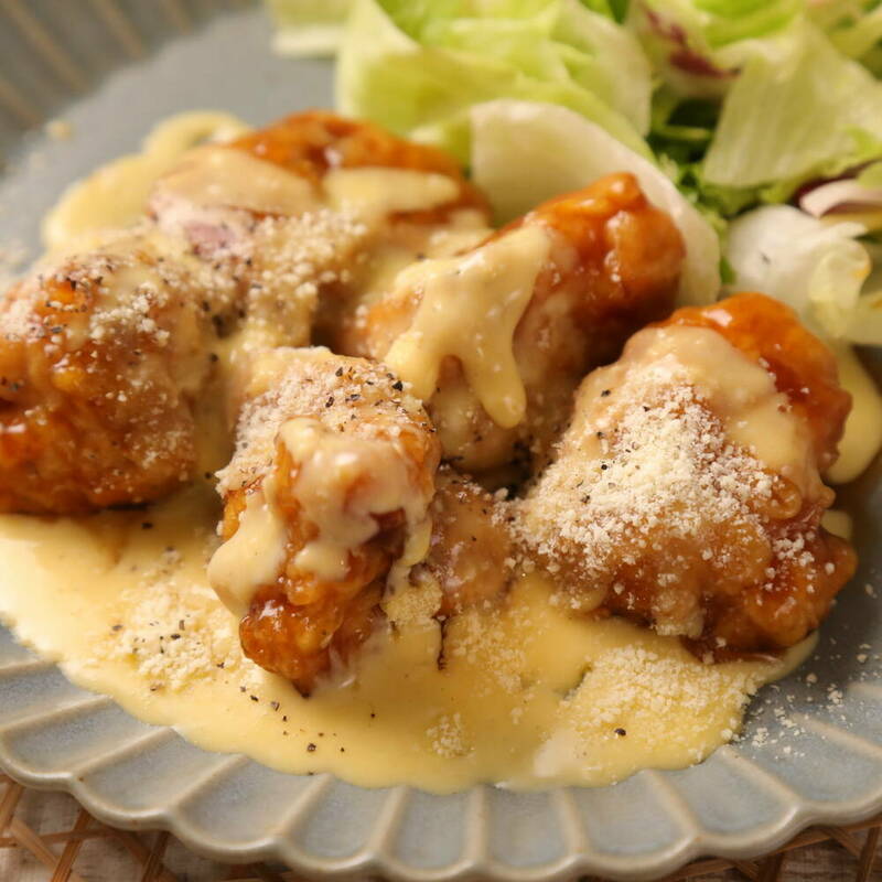 鶏肉に片栗粉をまぶして、溶き卵にくぐらせる。中温(170℃)熱したサラダ油で6〜7分程、きつね色になるまで揚げる。