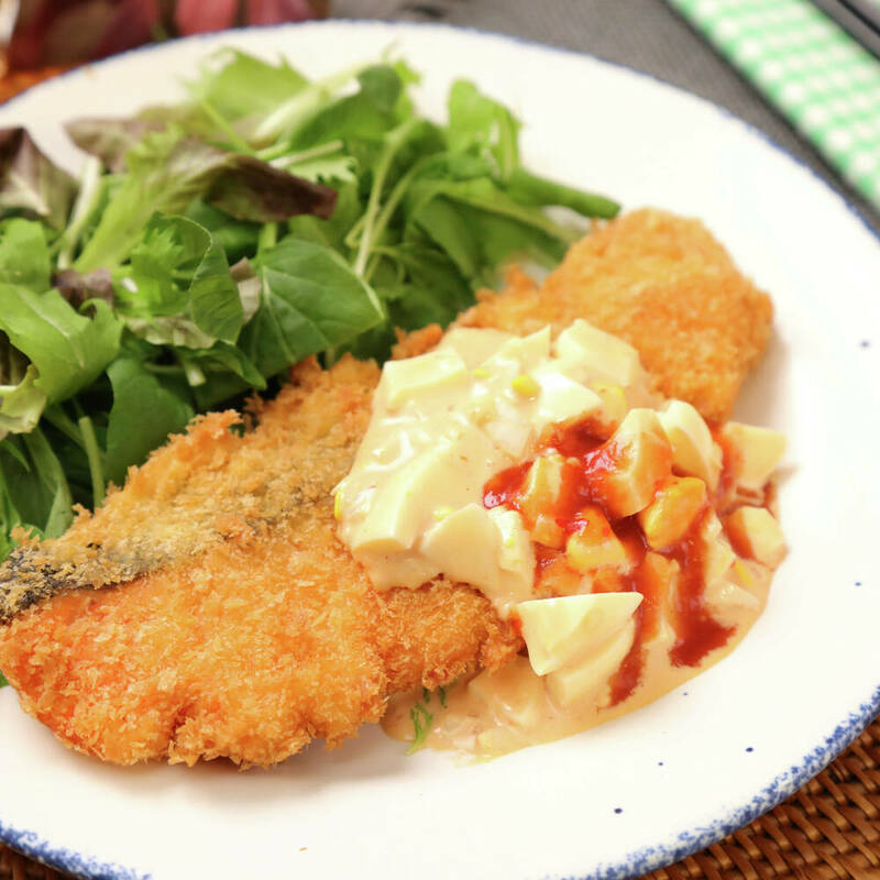 【鮭フライ】鮭に塩少々、こしょう少々(分量外)をふる。ボウルに【A】を混ぜ合わせ鮭をくぐらせパン粉を付ける。