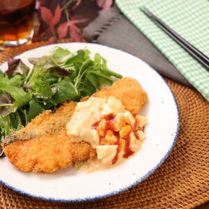 サラダ油を180℃に熱し、<1>をきつね色になるまで揚げる。