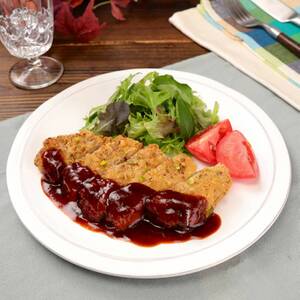 豚肉の筋を切り、麺棒や包丁の背で叩き、薄く伸ばす。両面に塩、粗びき黒こしょうをして薄力粉を薄くまぶす。