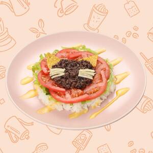 仕上げにトルティーヤチップ、シュレッドチーズを飾る。