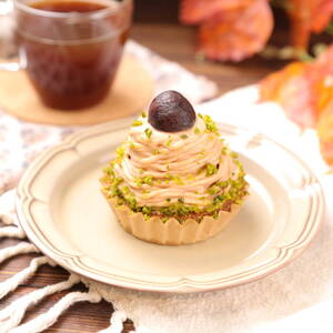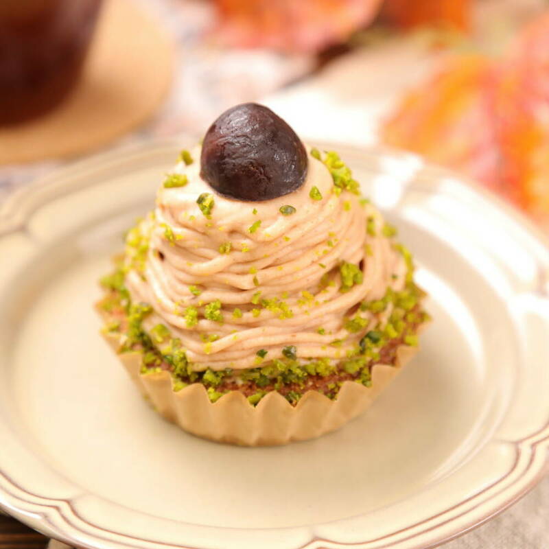 <8>の中心にむき甘栗1個をのせ、周りに<13>を絞る。ゴムベラで表面を整える。