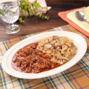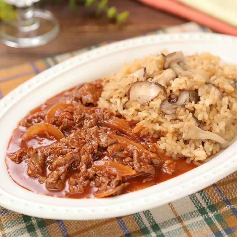 玉ねぎにバターがなじんだら牛肉を入れてほぐしながら炒める。ほぐれたら残りの赤ワインを入れて混ぜ合わせる。