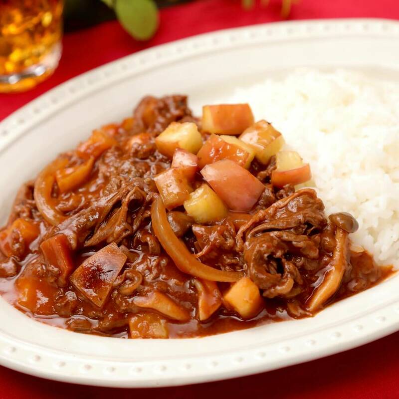 【B】を入れて混ぜ合わせ、ひと煮立ちさせる。火を弱めて4分程煮込み、仕上げにトッピング以外のりんごを入れてなじませる。