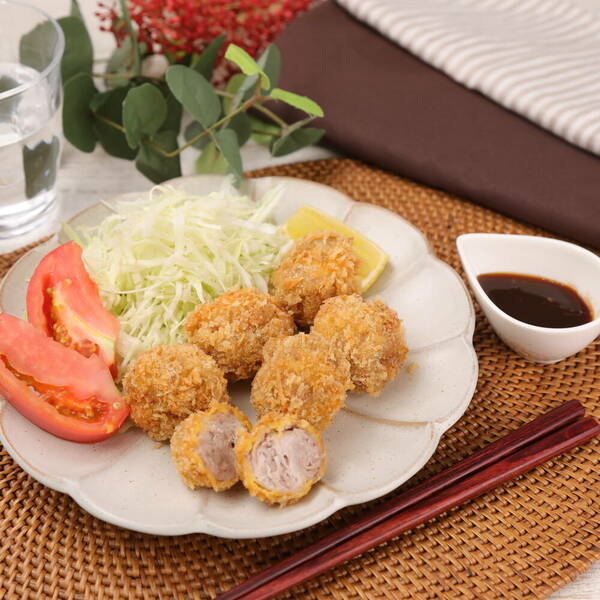 器に<6>と<1>を盛りつける。別の器にとんかつソースを添える。