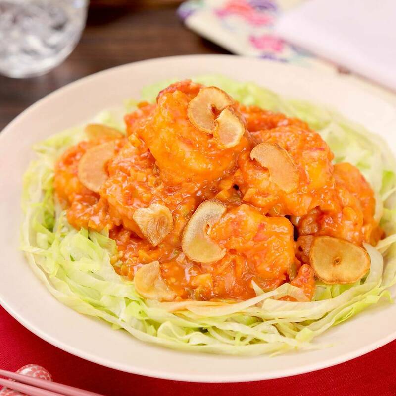 器にレタスをひき<10>を盛りつけ、<6>をお好みで手で砕いてちらす。