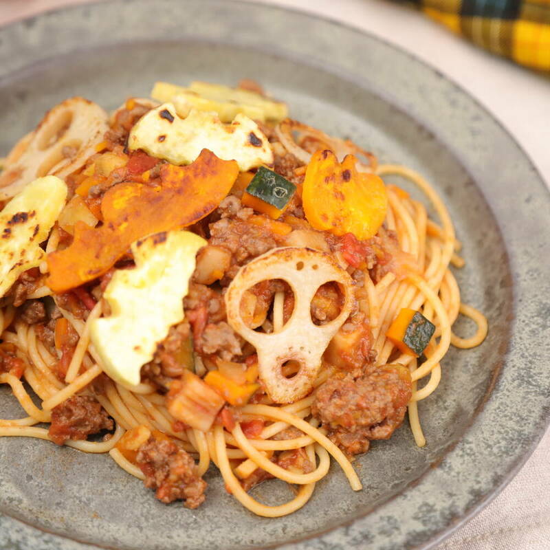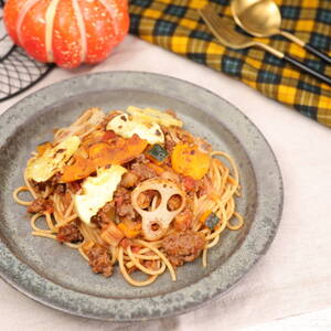フライパンにオリーブオイル(分量外)をひき、<3>の型抜きした野菜と<4>のがいこつ型のれんこんを焼く。一旦取り出す。