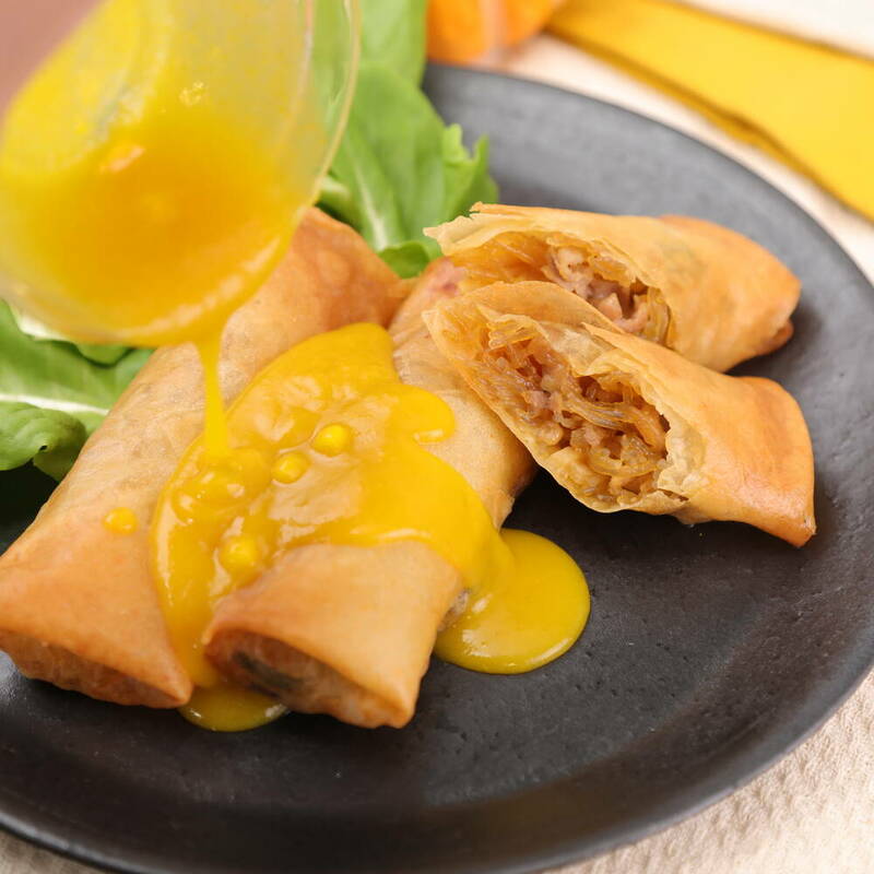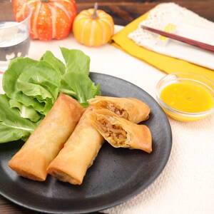 春巻きの皮を広げ、手前に<7>の1/6量をのせる。