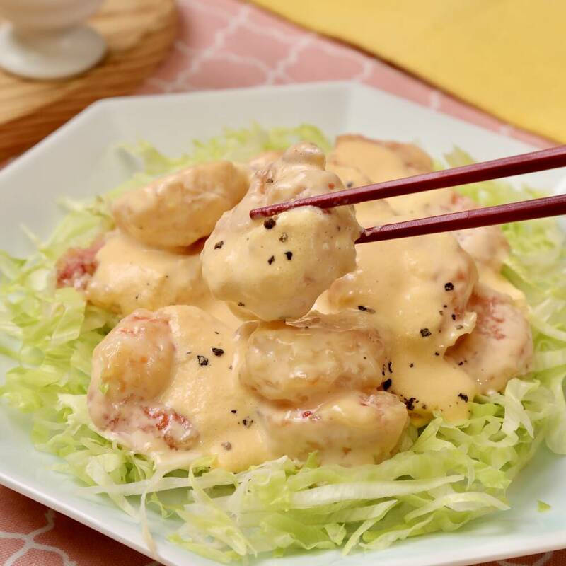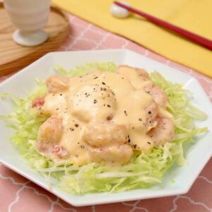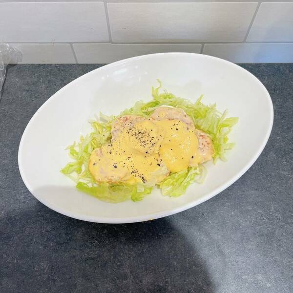 器にレタスを敷き、<7>をのせ、上から<8>をかける。粗びき黒こしょうをふる。