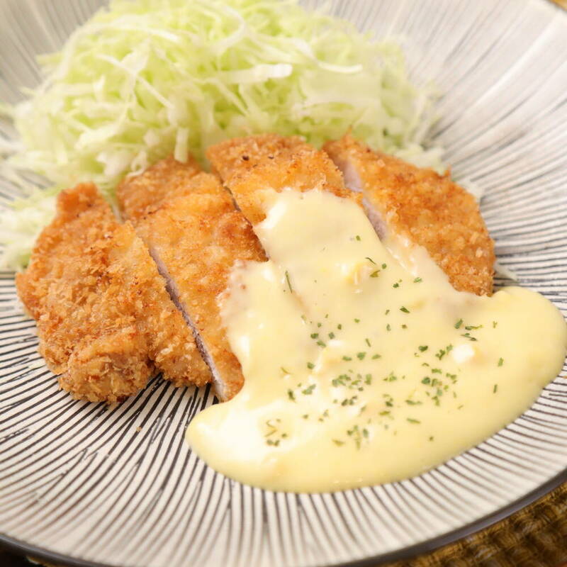 器に水気を切ったキャベツ、とんかつを盛る。ソース、ドライパセリをかける。
