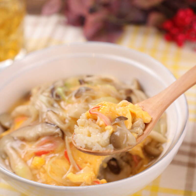<9>を半量入れ大きく混ぜる。お好みの硬さになったら火を止め、ご飯の上にのせる。残りの半量も同様に作る。