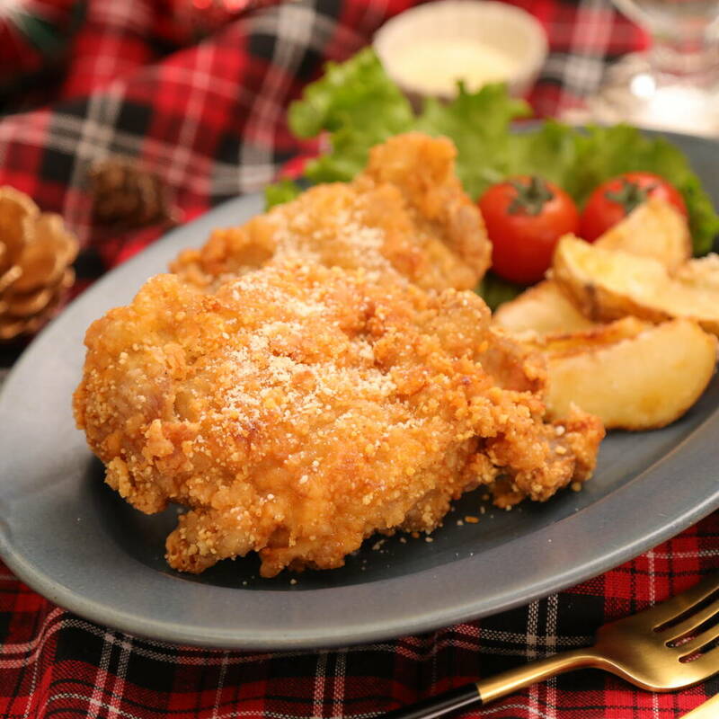 鶏もも肉に塩、粗びき黒こしょうをふり、にんにく、しょうがを両面に塗る。