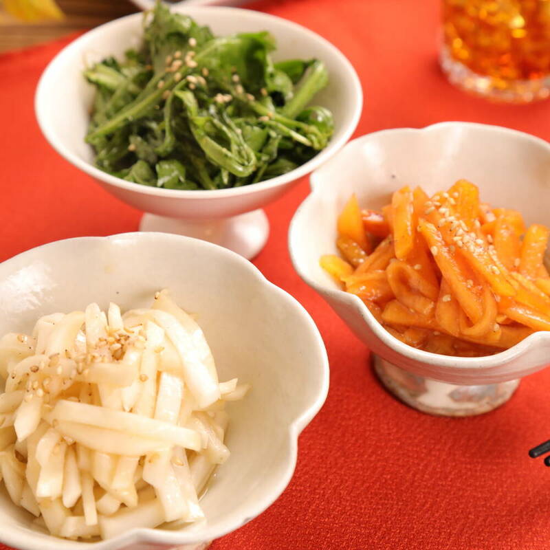 柿とかぶは皮を向き棒状に切る。春菊は葉の部分を手でむしり、適当な大きさにちぎる。茎の部分は包丁で斜めに薄切りにする。