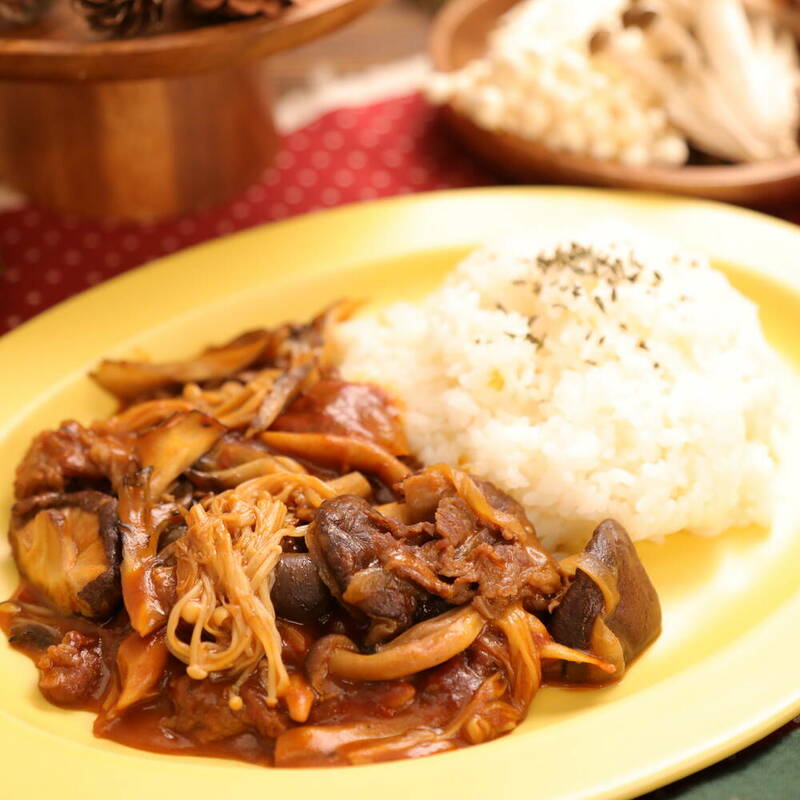 しんなりしてきたら、しめじとえのき、しいたけの傘を加え強火で炒める。