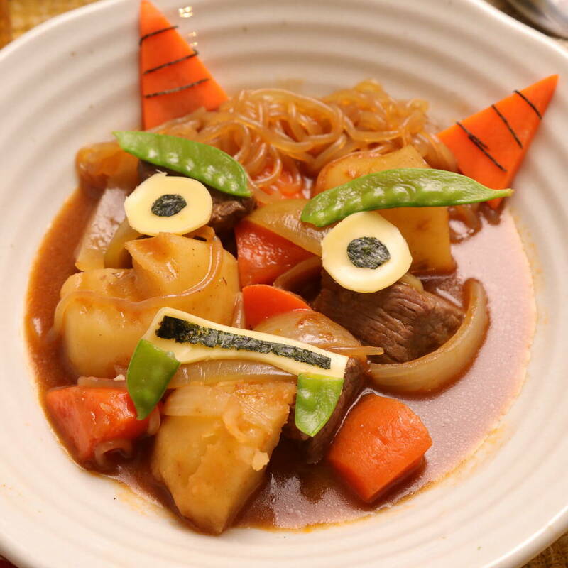 *鬼デコはしらたきで髪を作りました。煮込むときは取りやすいようにまとめておくと良いです。