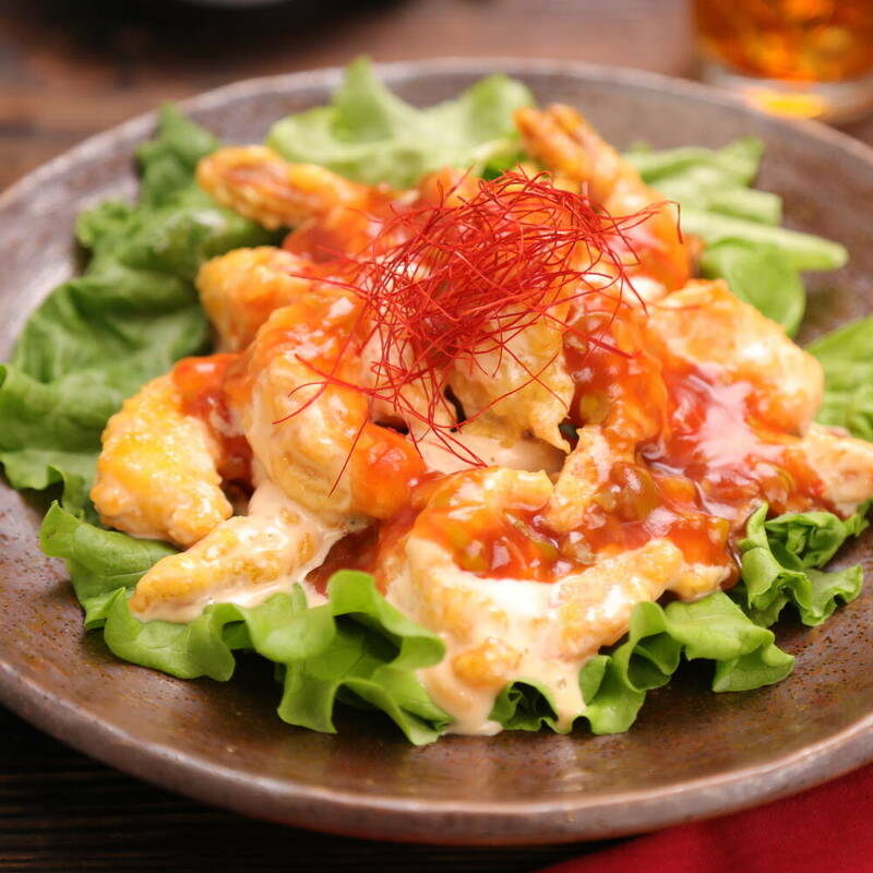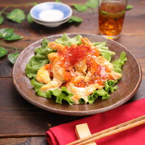 フライパンに多めのサラダ油をしき中火で温めておく。【A】を絡めたえびを揚げ焼きにする。両面に焼き色をつける。