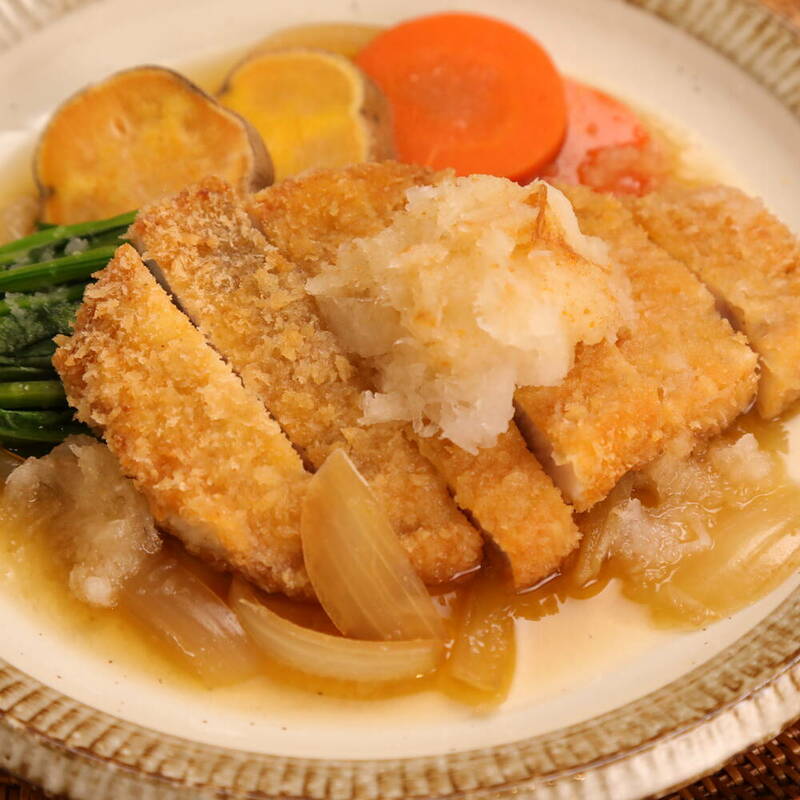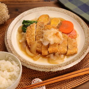 豚肉の筋に切り込みをいれ、塩こしょう少々(分量外)する。薄力粉、溶き卵、パン粉の順につけて中温に熱したサラダ油で揚げる。
