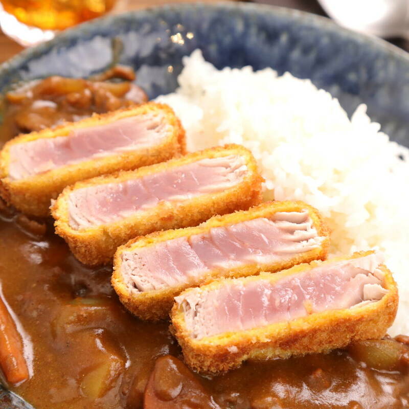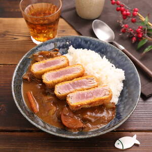 <8>を食べやすい大きさにカットする。器にごはんを盛りカレーをかける。カツを盛り付ける。