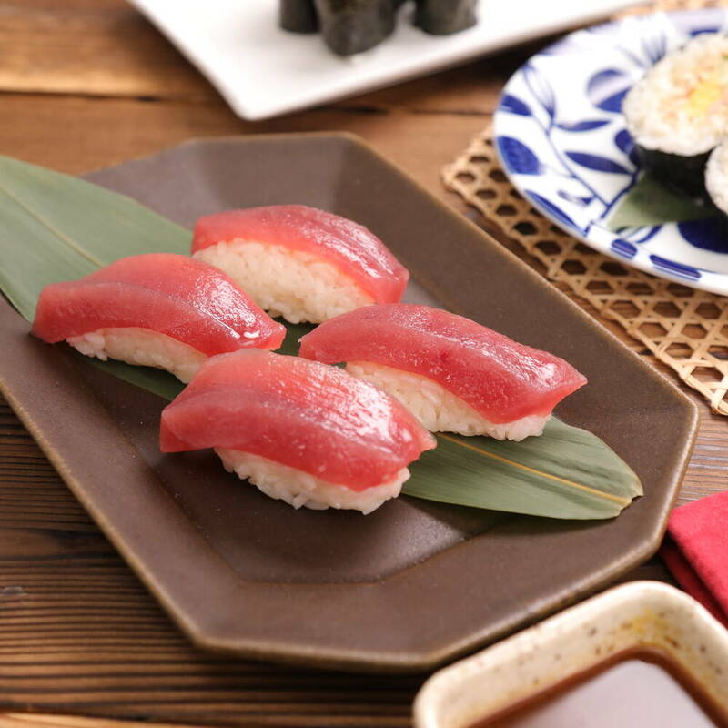 酢飯を15g程度手にとり、軽く握る。まぐろにわさびを適量塗り、酢飯の上にのせる。