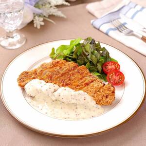 <2>の両面に塩こしょうをし、<3>を絡ませ、パン粉を満遍なくつける。