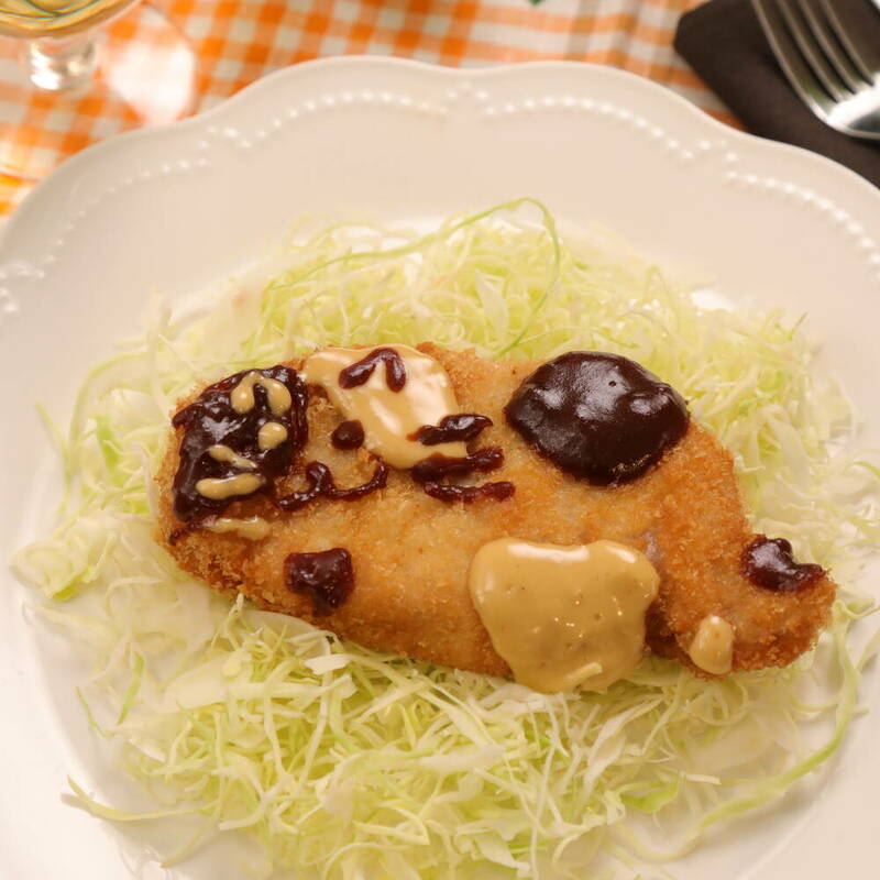 薄力粉、溶き卵、パン粉の順につけて中温に熱したサラダ油で揚げ、全体がきつね色になったら油を切る。