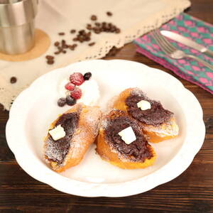 電子レンジ(600W)で1分~1分30秒、人肌ほどになるまで温める。※バゲットに染み込みやすくなります