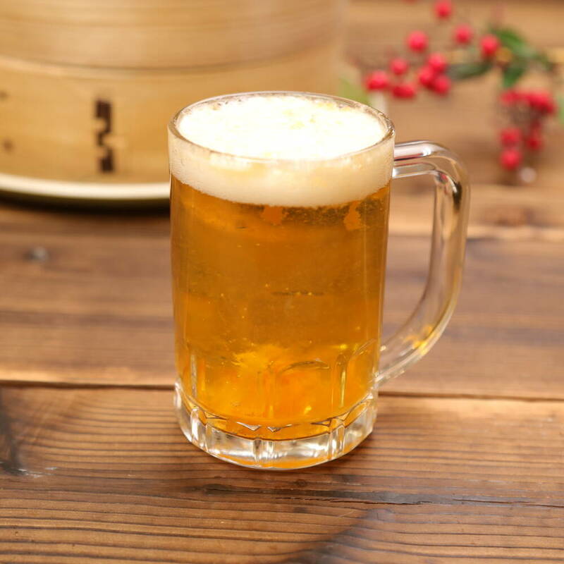 アプリコットジャムと烏龍茶を混ぜ合わせる。ビールを注ぐ。