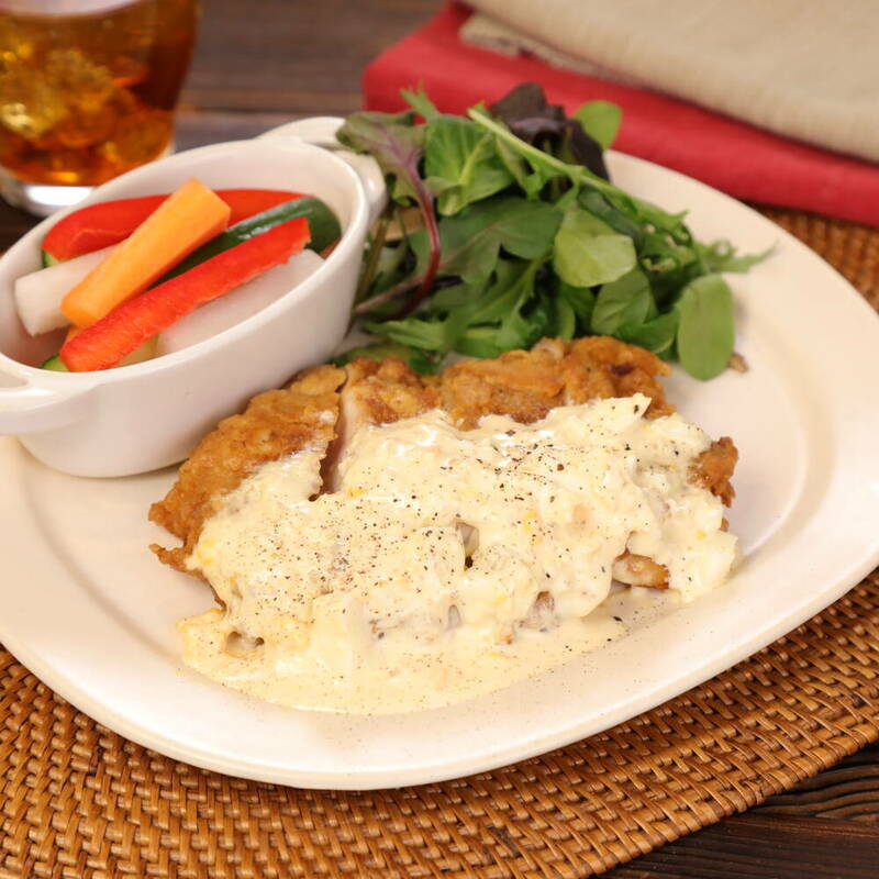 鶏肉に薄力粉をまぶし、溶き卵にくぐらせて皮面から揚げる。(途中裏表を返しながら5分〜)