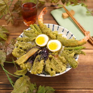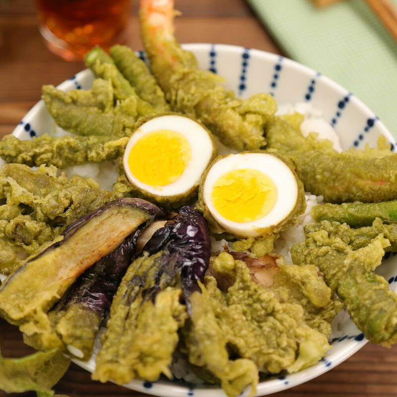 【A】の緑茶パウダーに水を少量ずつ加え溶く。他の材料をすべて加え混ぜ合わせる。油を180℃に加熱しておく。