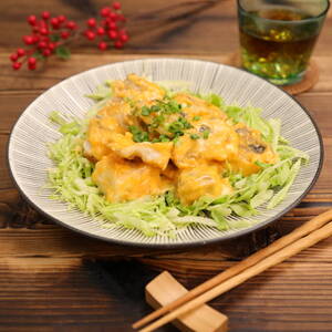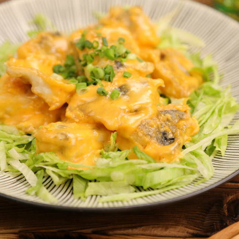 上がったらバットに移し軽く粗熱をとる。器に水からひきあげたレタスを敷く。さわらを【A】にくぐらせながら盛り付ける。