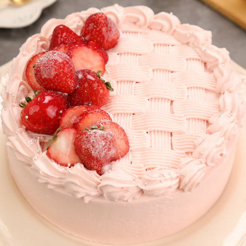 全面に絞れたら、星口金のクリームを周りに絞る。左側にいちごを飾りつける。