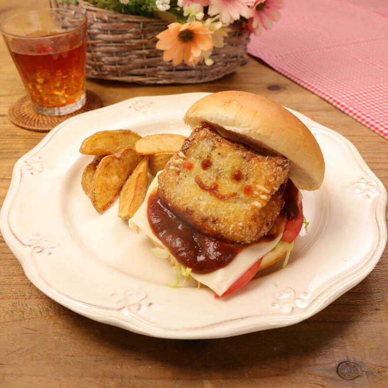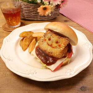 バンズでふたをして器に盛り付け、ポテトを添える。