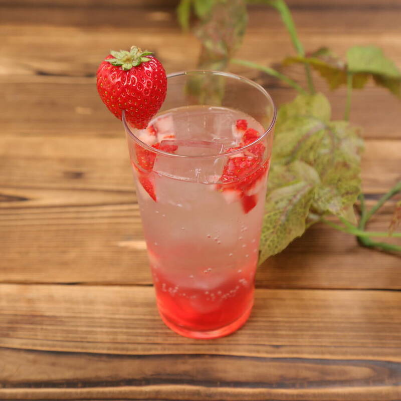 グラスにザクロ酢、みじん切りのいちご、氷(分量外)をと入れ、レモンサワーを注ぐ。