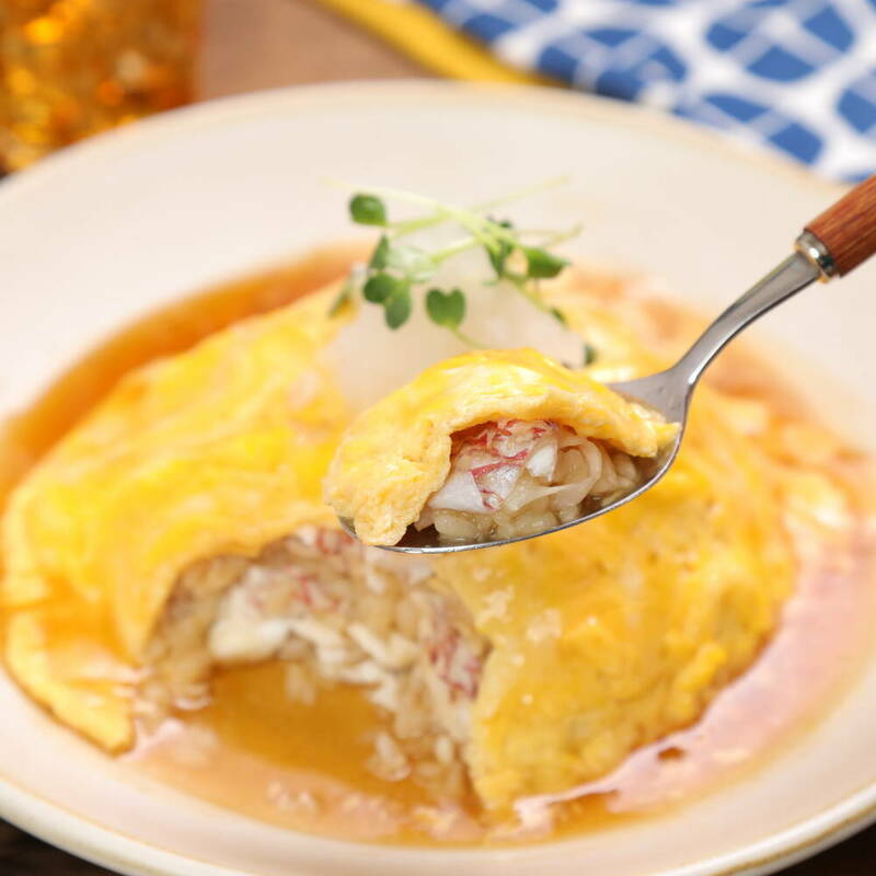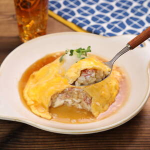 <9>の半量を流し込み、かき混ぜながら半熟状にする。