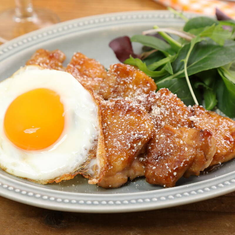 フライパンにサラダ油をひき、中火で加熱する。卵を割り入れふたをしてお好みの固さまで焼く。