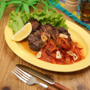 玉ねぎは薄切りにする。にんにくは薄切りにして爪楊枝で芽をくり抜く。レモンはくし切りにする。赤唐辛子はタネを取り除く。