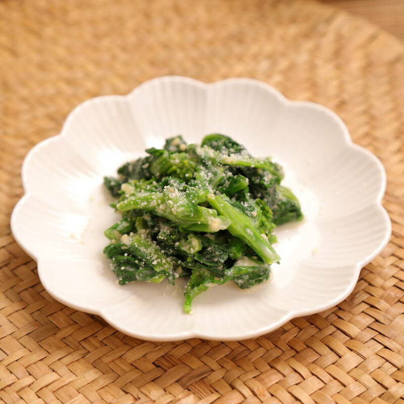 湯を沸かして1%程度の塩(分量外)を加える。茎を入れて20秒茹で、葉を加えてさらに20秒茹でる。