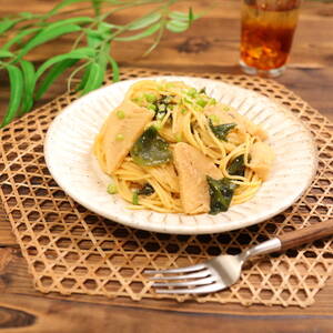 わかめは粗く刻んでおく。たけのこは3cm程度の長さに薄切りにする。たらこは薄皮を取り除く。青ねぎは小口切りにする。