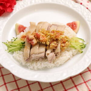 沸騰したらアクを取り除き、鶏肉を上下に返し、弱火で10分ほど煮る。そのまま余熱で火を通す。