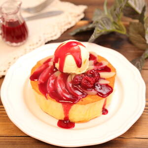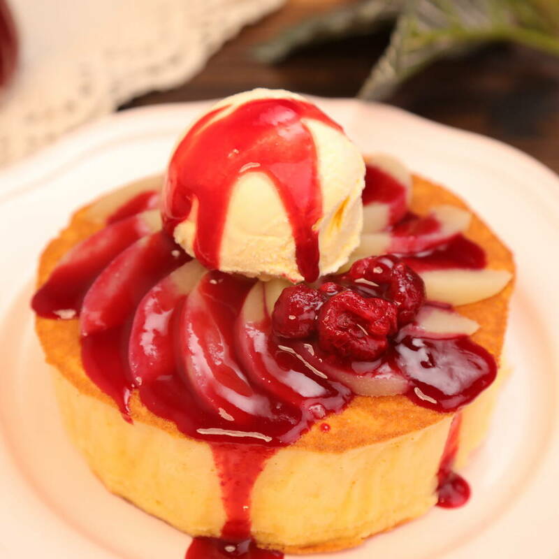 桃のふわふわパンケーキ