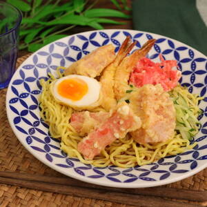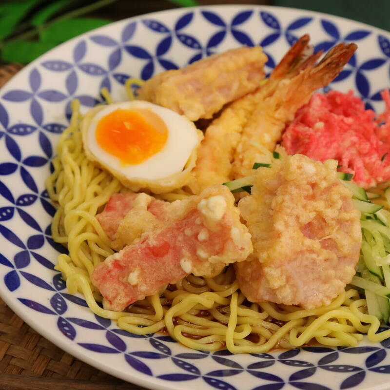 冷やしておいた【A】をかけ、天ぷら、きゅうりを盛り付ける。