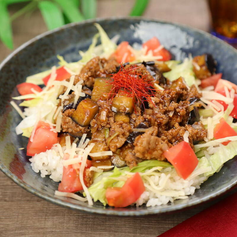 レタスは千切りにして水にさらしておく。なす、トマトは1cm角に切る。長ねぎはみじん切りにする。