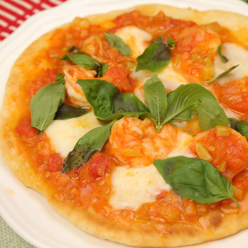 フライパンにオリーブ油を引いて中火で熱し、えびの両面を焼きて塩少々(分量外)する。火が通ったら取り出しておく。