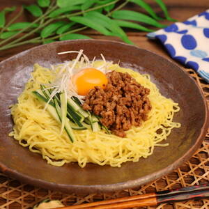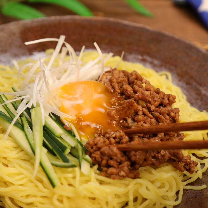 鍋にたっぷりの湯を沸かし、中華麺をパッケージの表記通りに茹で、水で締めて器に盛り付ける。