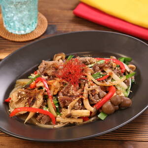 器に盛り付け、白ごまと糸切り唐辛子を飾る。