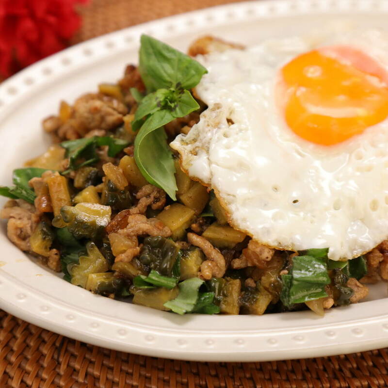 しんなりしたらゴーヤを炒め合わせる。しんなりしたら【A】を混ぜ合わせて加え、水分がなくなるまで煮詰める。