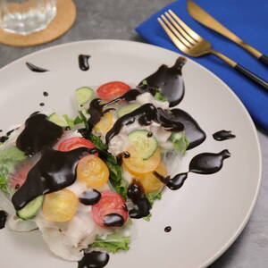 いかすみソースにポン酢を入れて混ぜ合わせる。ココットにいれておく。
