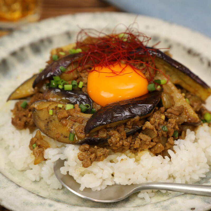 にんにく、しょうがをみじん切りにする。玉ねぎは粗みじん切りにする。なすは縦4等分にし、それぞれ斜め半分に切る。
